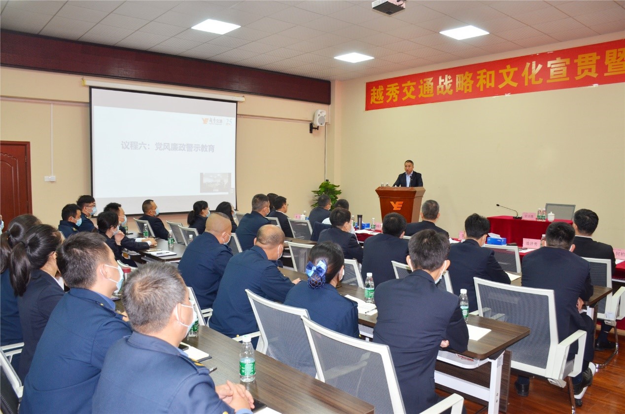 12日上午,潘泽勇同志在湖南长株公司参加越秀交通战略和文化宣贯暨党风廉政警示教育会,围绕国有企业从严治党、从严治企要求,结合身边案例,对纪检监察工作基本理念、基本原则等进行深入讲解,对信访举报的定位和纪律要求作了说明,并结合近期以来越秀交通乃至集团系统内办理的信访举报和案件暴露出的问题,对越秀交通和长株公司领导干部提出了四点要求:一是加强领导干部日常监督管理。领导干部要以身作则、率先垂范,带好头做好表率;交通纪委要强化上级监督,着力破解因距离远等客观因素带来的监督乏力、不到位的问题,突出重点对象,把日常监管扎扎实实落实到位。二是持之以恒落实中央八项规定精神。作风建设是一项长期性的任务,要继续绷紧这根弦,严格按照“三公”经费管理等相关制度要求,在保证业务正常需要的情况下,落实好中央八项规定精神。三是正确履行职责,提升合规管理水平。要有的放矢,针对信访举报集中反映的问题,下功夫提升规范管理水平。四是关心维护好员工权益。要结合党史学习教育“为民服务办实事”,主动倾听员工的合理诉求,重视并维护好员工的合法权益。