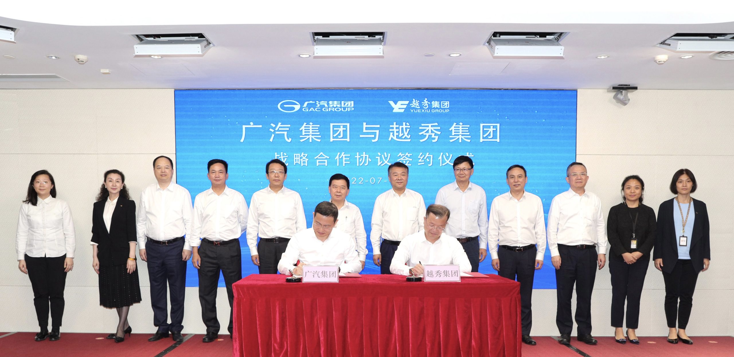 7月12日,越秀集团与广汽集团在广州国际金融中心举行战略合作协议签约仪式。广汽集团党委书记、董事长曾庆洪,越秀集团党委书记、董事长张招兴见证签约仪式,越秀集团管理咨询协调委员会副主任委员林昭远与广汽集团副总经理閤先庆代表双方签署战略合作协议。根据协议,双方将在产业地产运营、金融服务、市场拓展、品牌推广等领域展开全面战略合作,实现优势互补、合作共赢。
